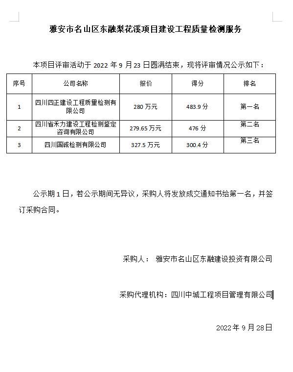 雅安市名山區(qū)東融梨花溪項(xiàng)目建設(shè)工程質(zhì)量檢測(cè)服務(wù)
